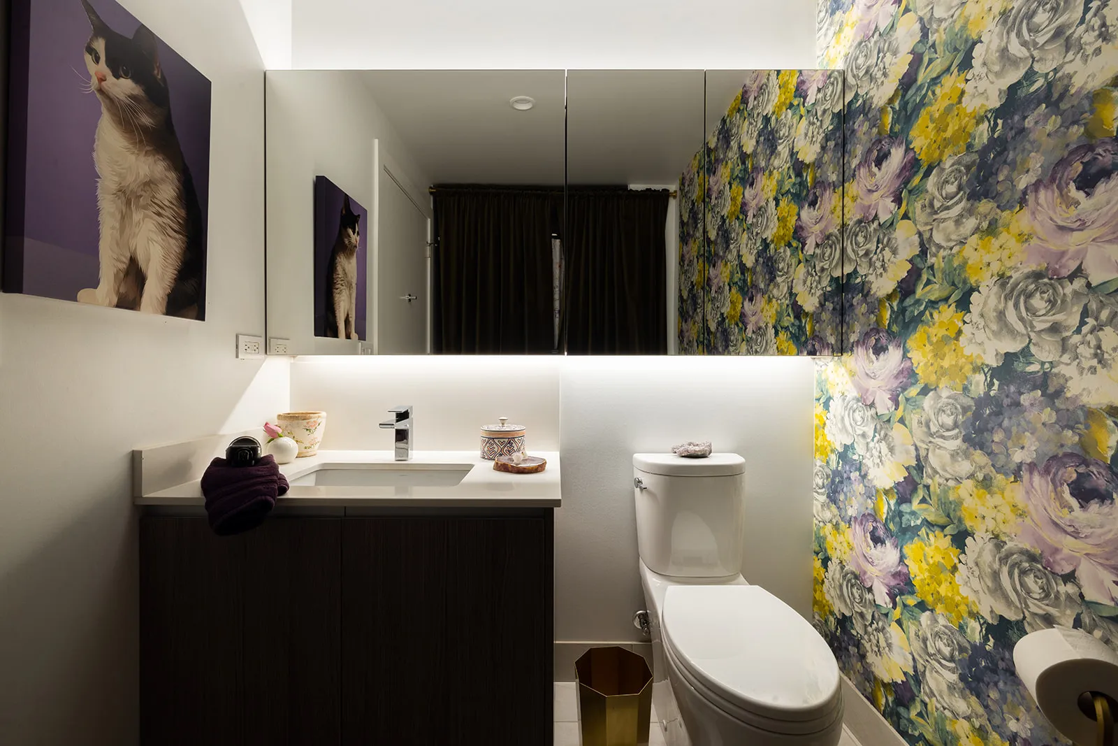 Perched on the 15th floor of a striking downtown Chicago high-rise, this one-bedroom residence was designed as a personal expression — bold, confident, and unapologetically fun. Our client wanted her home to reflect her love of art, fashion, and vibrant living, while still feeling sophisticated and grounded within the clean, modern architecture of the building.